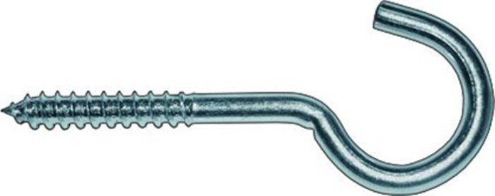 Описание: шуруп крючок или его второе название шуруп полукольцо выполнен из проволоки на один конец которой нанесена универсальная резьба, а другой конец изогнут в виде полукольца. Сечение проволоки разнообразно и начинается от 2.5-3мм и заканчивая 10-12мм. Шурупы очень хорошо сконструированы для крепления в дереве.
